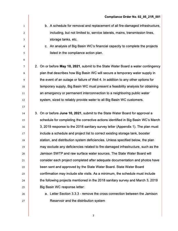 Thanks for posting! The State Water Board laid out multiple measures for BBW to gain compliance. These measures had deadlines of between 2021 and Feb, 2023. Do we know if any of the actions took place or deadlines were met? If not, can we find out?