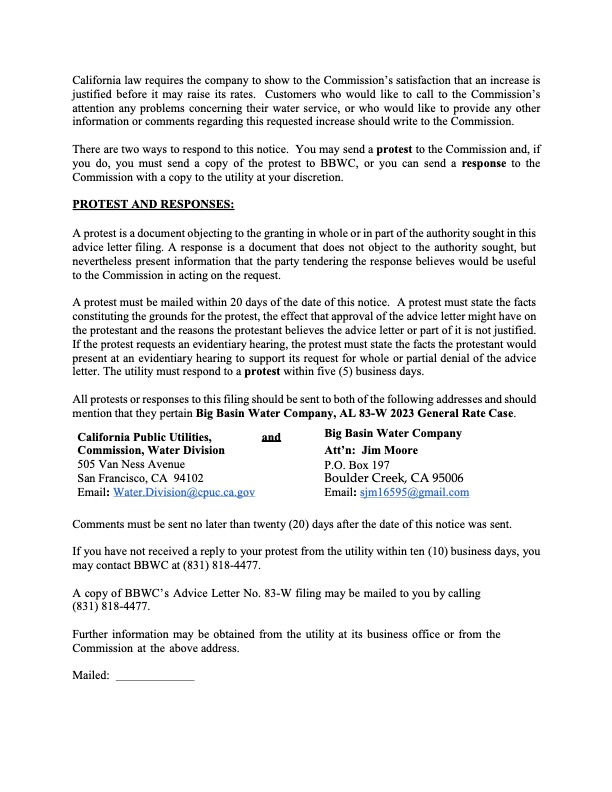 Thanks for posting this and please...everybody plan to attend the meeting on 4/3, 6pm at the GC clubhouse to hear from the CPUC, BBW and perhaps some local representatives.